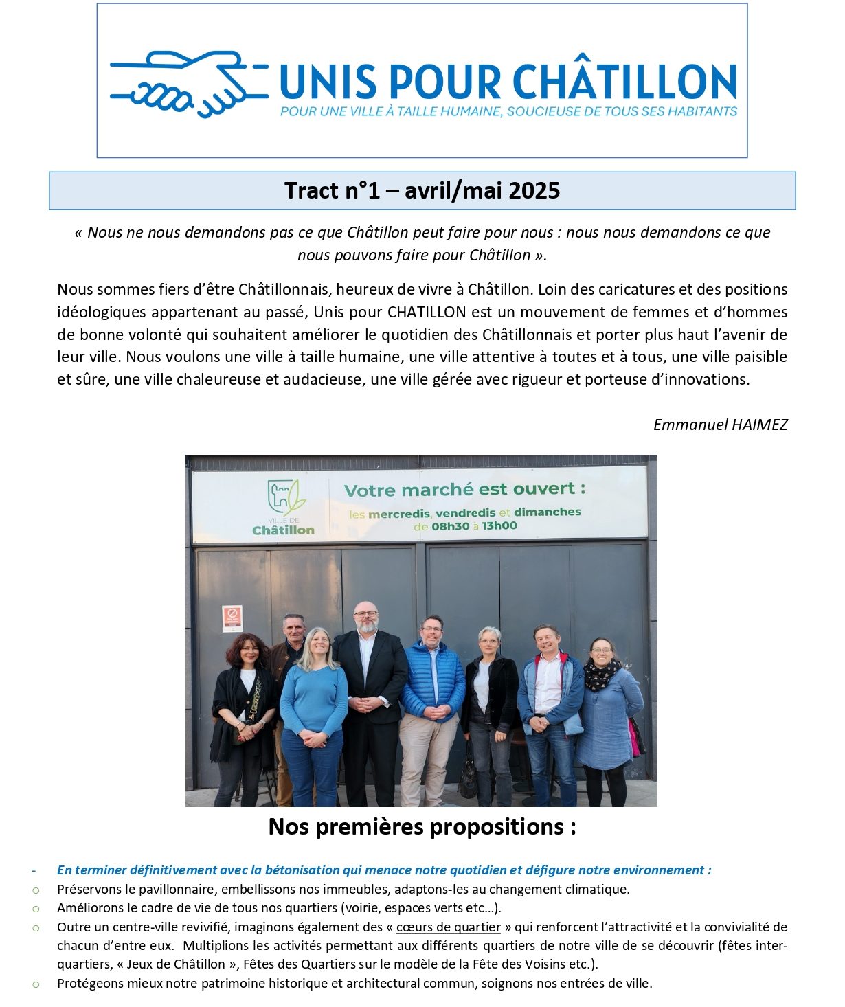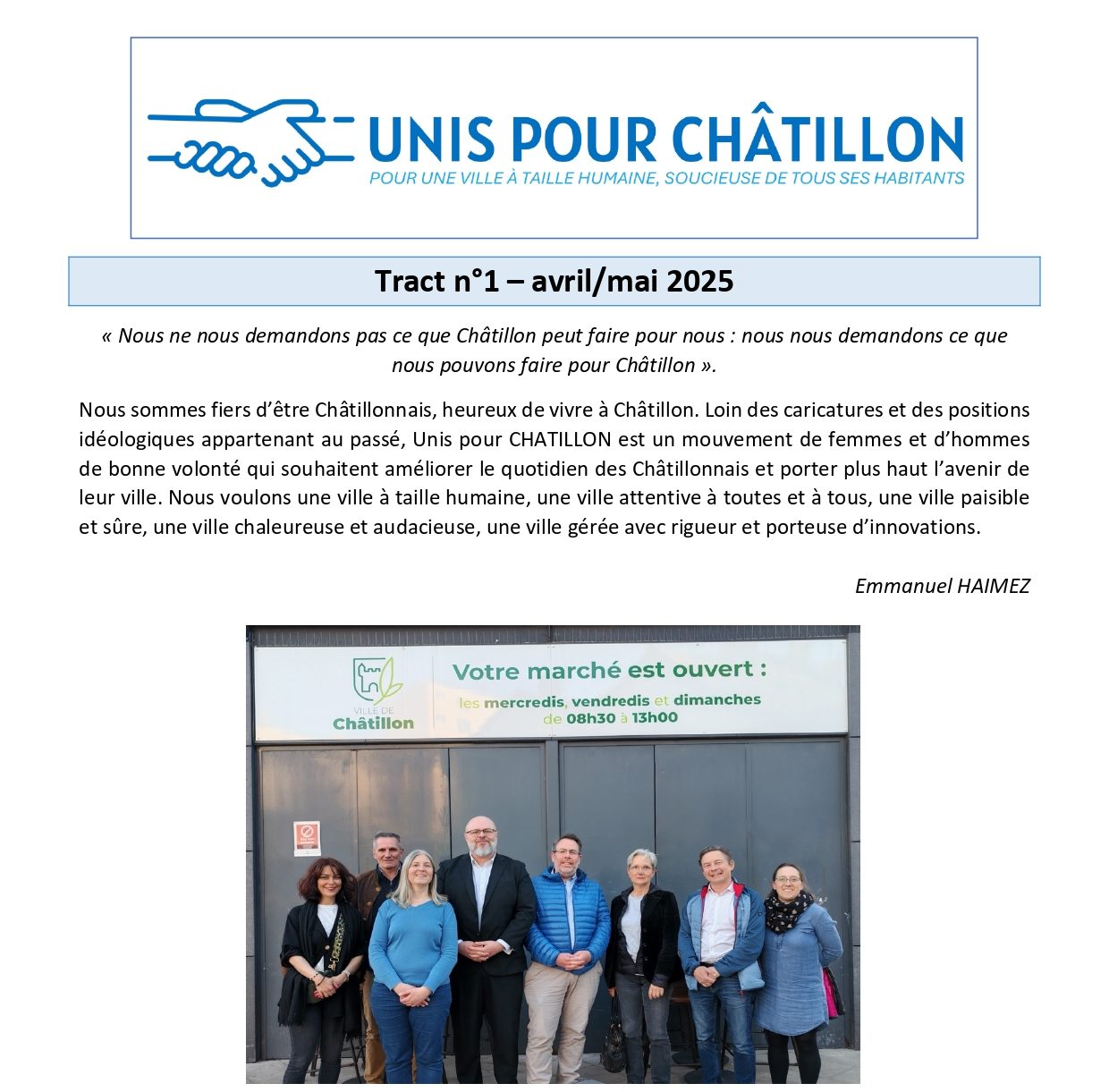 Chez UNIS POUR CHATILLON, nous croyons que chaque habitant mérite d'être entendu.